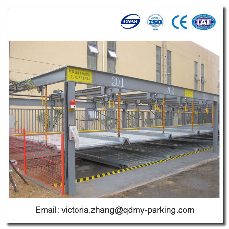 The equipment is designed with 2-levels and multi-rows and each level is designed with a space as an exchanging space. All space can be lifted automatically except the space in the top level. When the car needs to park or release, all spaces under this car space and forms lifting channel under this space. In this case, the space will go up and down freely. When it reaches the ground, the car will go out and in easily.